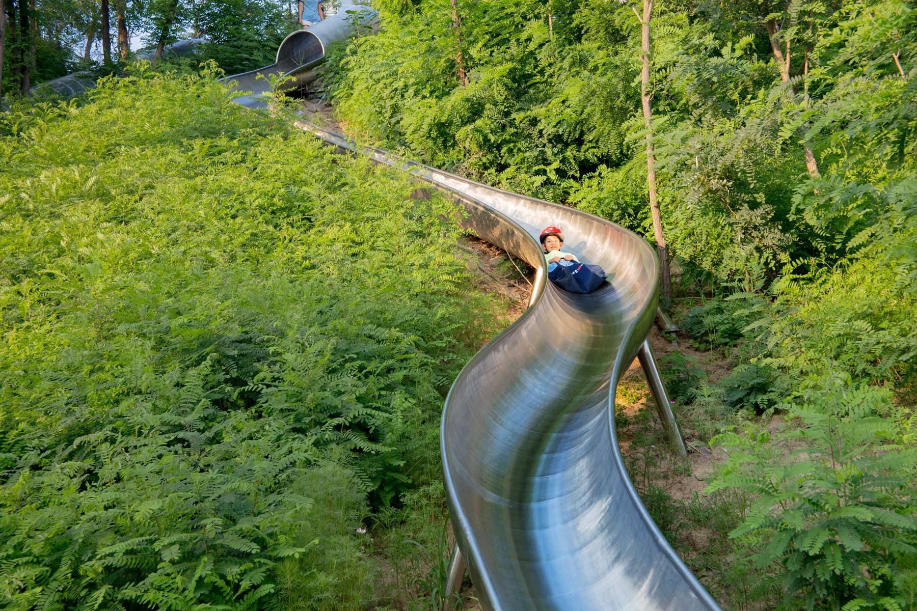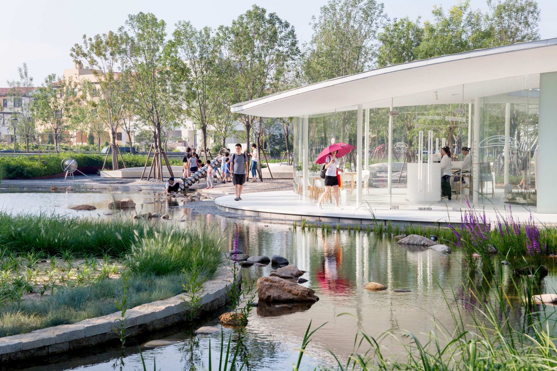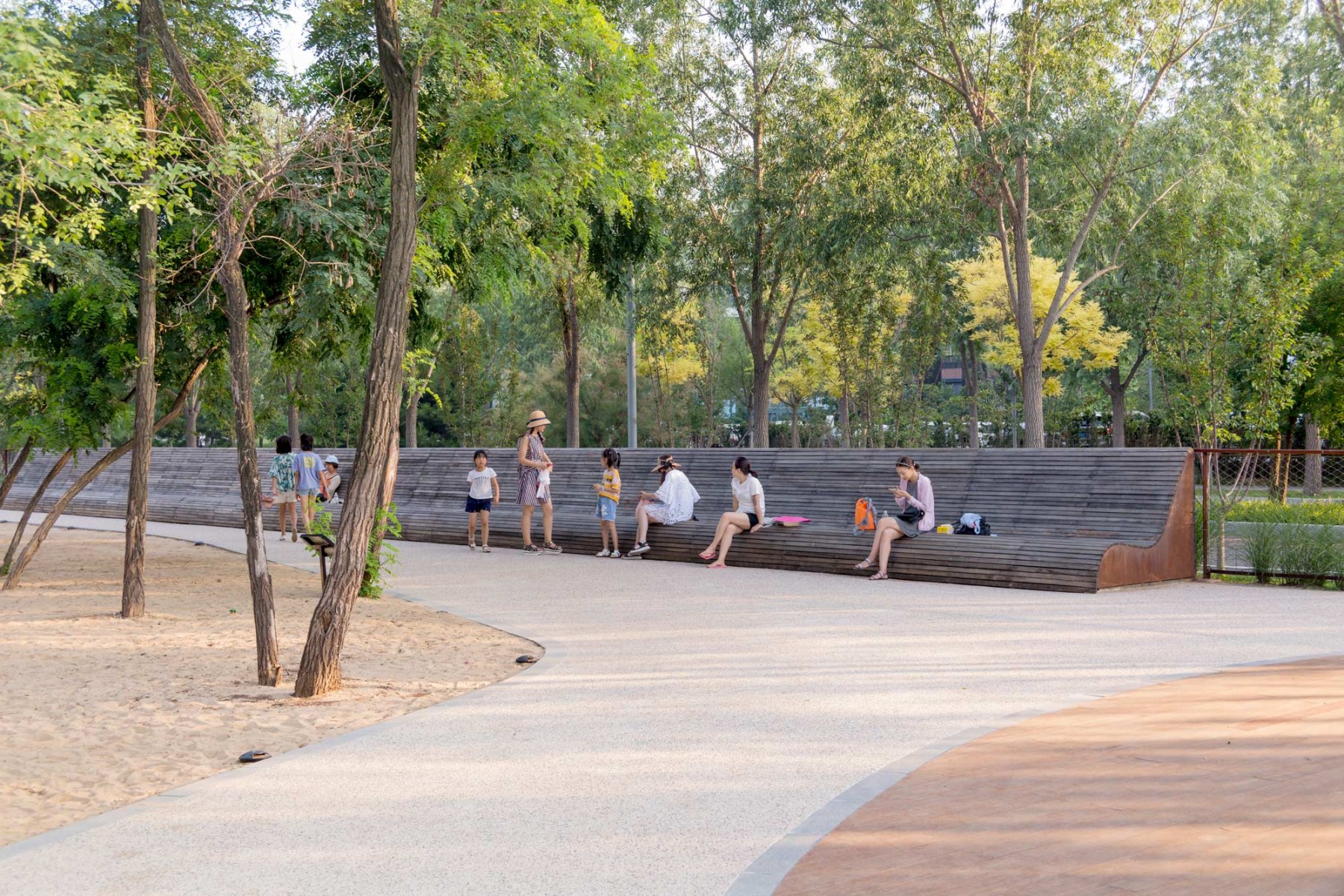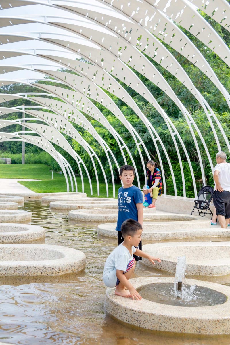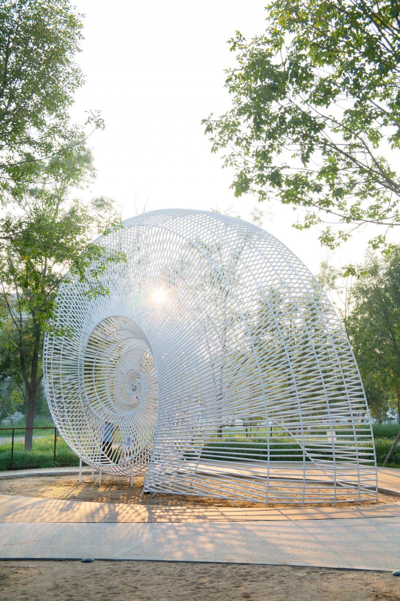 The project is located in an existing locust forest at the ARANYA gold coast resort in Beidaihe, Qinhuangdao. It is an outdoor playground & farm for children throughout the resort. The design proposal divides the site into two parts: a quiet meditation space in the forest and a joyful lively farm on the edge of the forest. The forest space has a simple wooden plank road and an acrylic screen that captures light and shadow, allowing people to experience the changes of light and wind in nature while walking in the forest. Inspired by the “Shan Hai Jing”, the farm space has several interactive landscape elements with animal forms such as fish bone pavilion, carp bench, starfish flower field, climbing conch and five-claw octopus slide, giving the venue a unique memory point. It also allows visitors to enjoy interaction with landscape elements and learn about the knowledge of animals, plants as well as agricultural irrigation while playing.