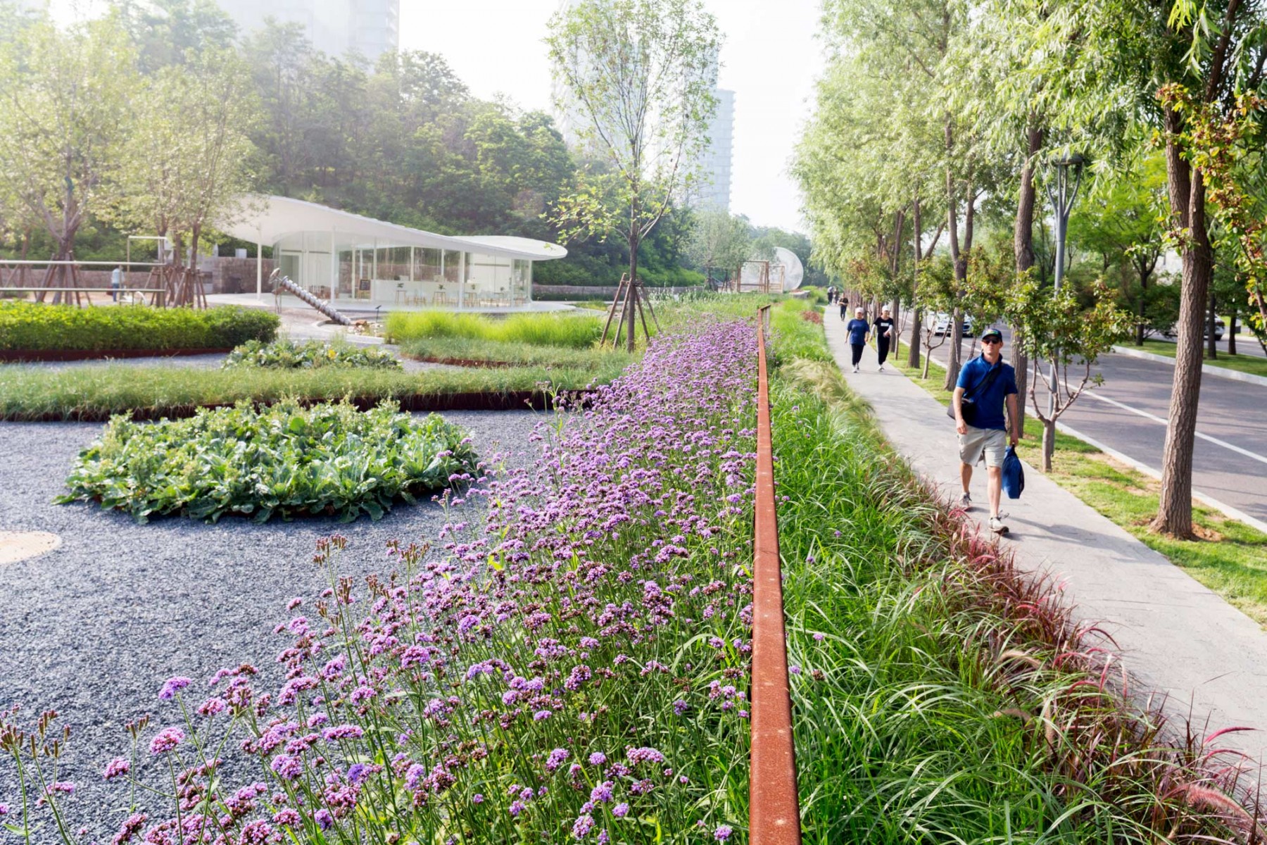 Boardwalks, Guardrails, Pathways, Screens, Tree groves