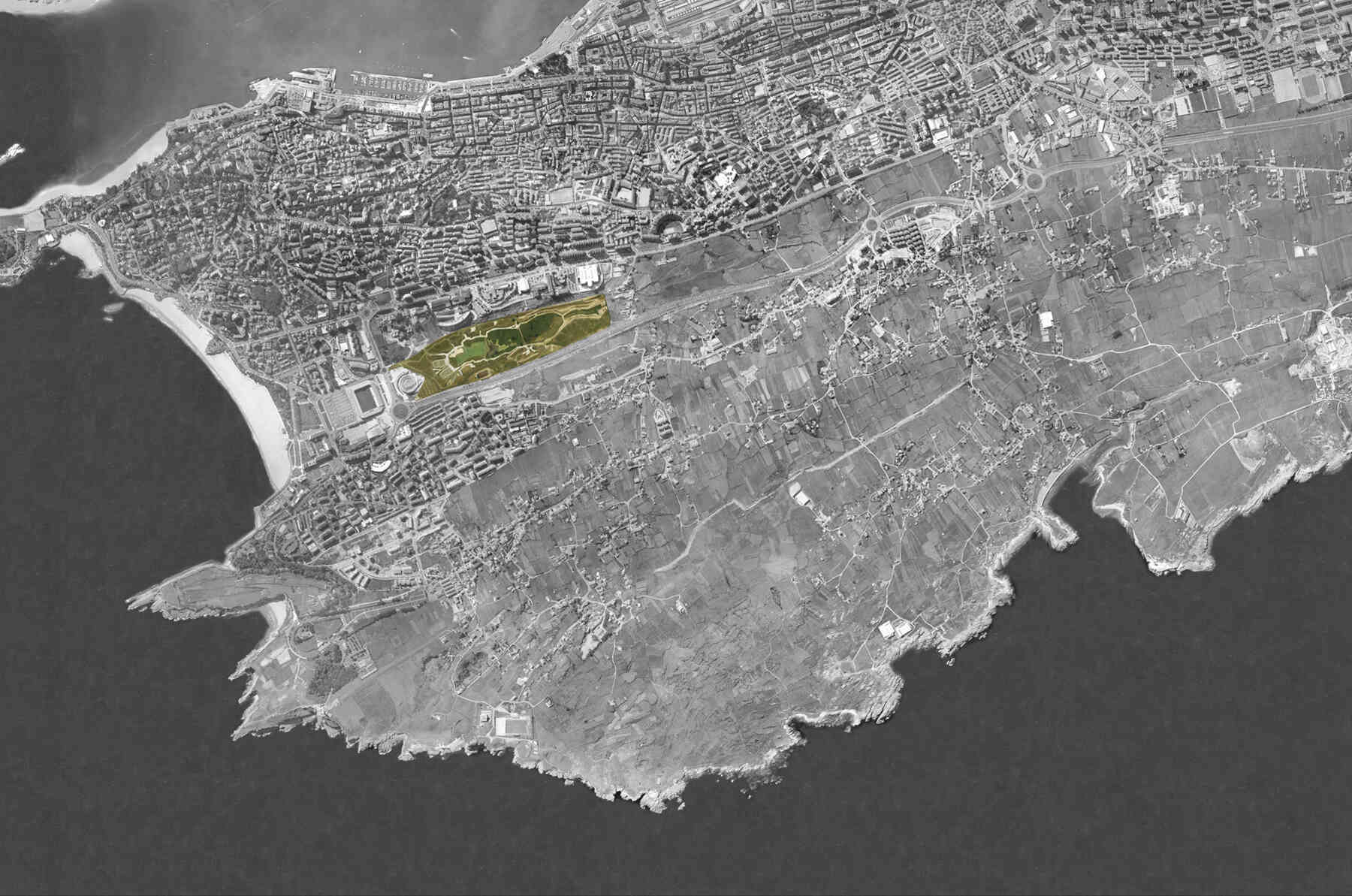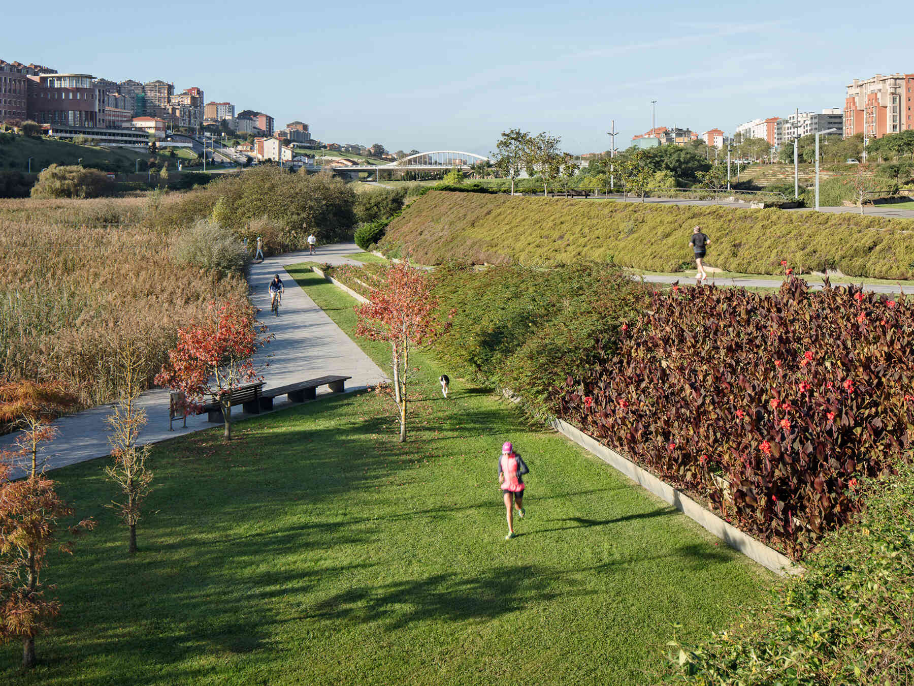 La Vaguada de las Llamas was a large tract of open space on the outskirts of Santander set aside by the Master Plan to be turned into a public park. Its location, at the centre of major urban growth perpendicular to the Sardinero beach, its special river-bed topography and its long narrow shape (1100 m long by 300 m wide) made La Vaguada de las Llamas a highly specific urban element. Added to the physical data was something that made Las Llamas a truly unique spot: the presence of a partially stagnant watercourse at its lowest point, giving rise to a large native colony of reeds that is unique in its extension.