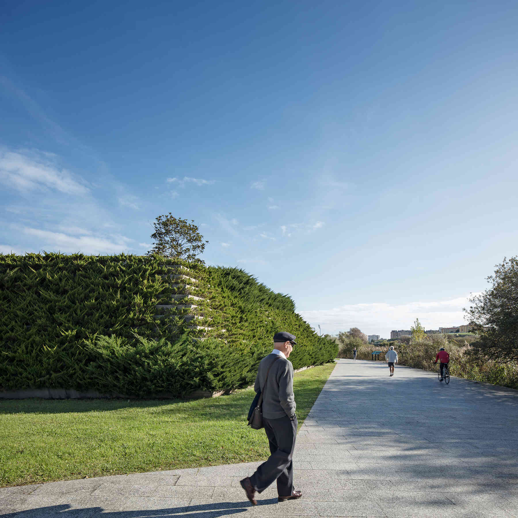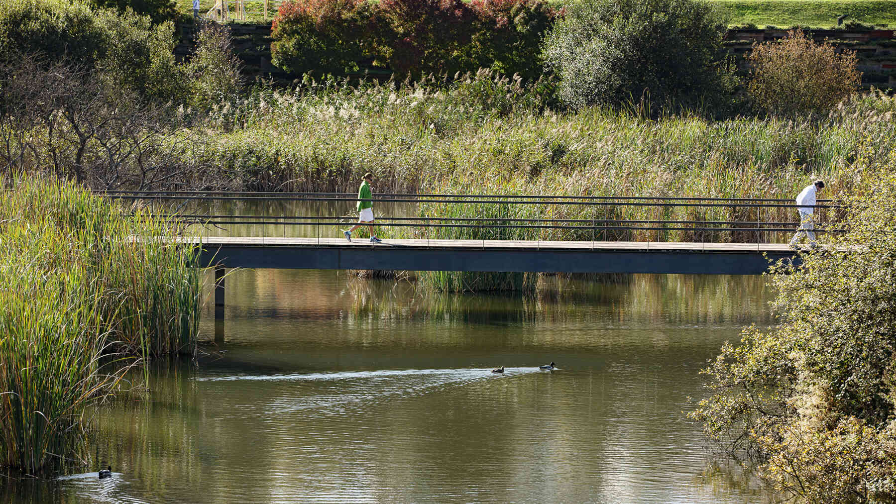 La Vaguada de las Llamas preserves and expands a large wetland of reed beds that becomes the central element of a large public park on the outskirts of Santander. Delimited by two roads, the park is structured by planted terraces that generate stairs, amphitheaters and ramps.