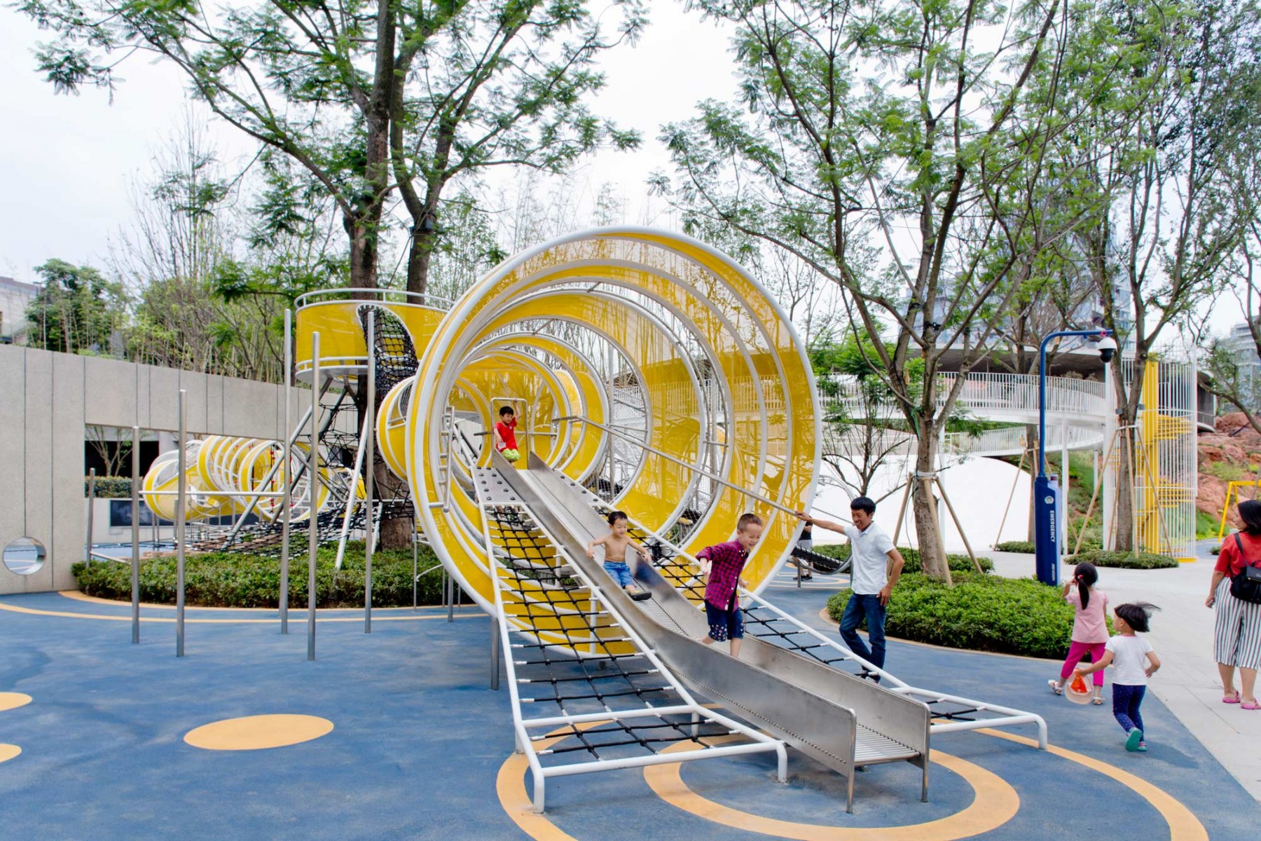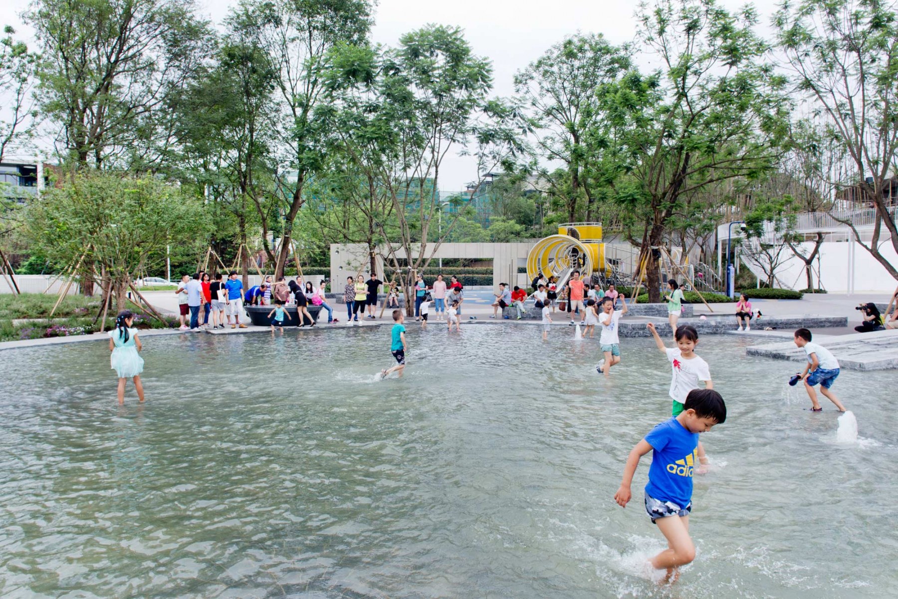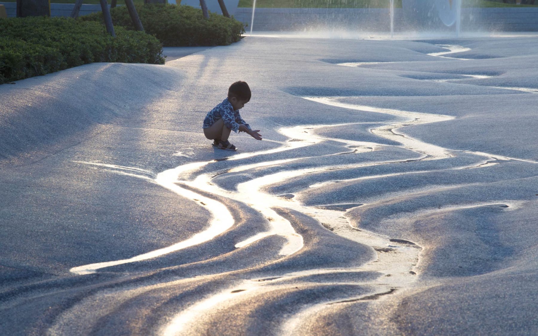 After understanding the history of man-water relationship and community status quo, the design team positioned the site as an children’s playground with the purpose of edutainment, an open-air water experience pavilion, which is inspired by various forms and features of water to design landscape spaces and nodes, so that people better understand the importance of water to life and reshape the relationship between human and water.