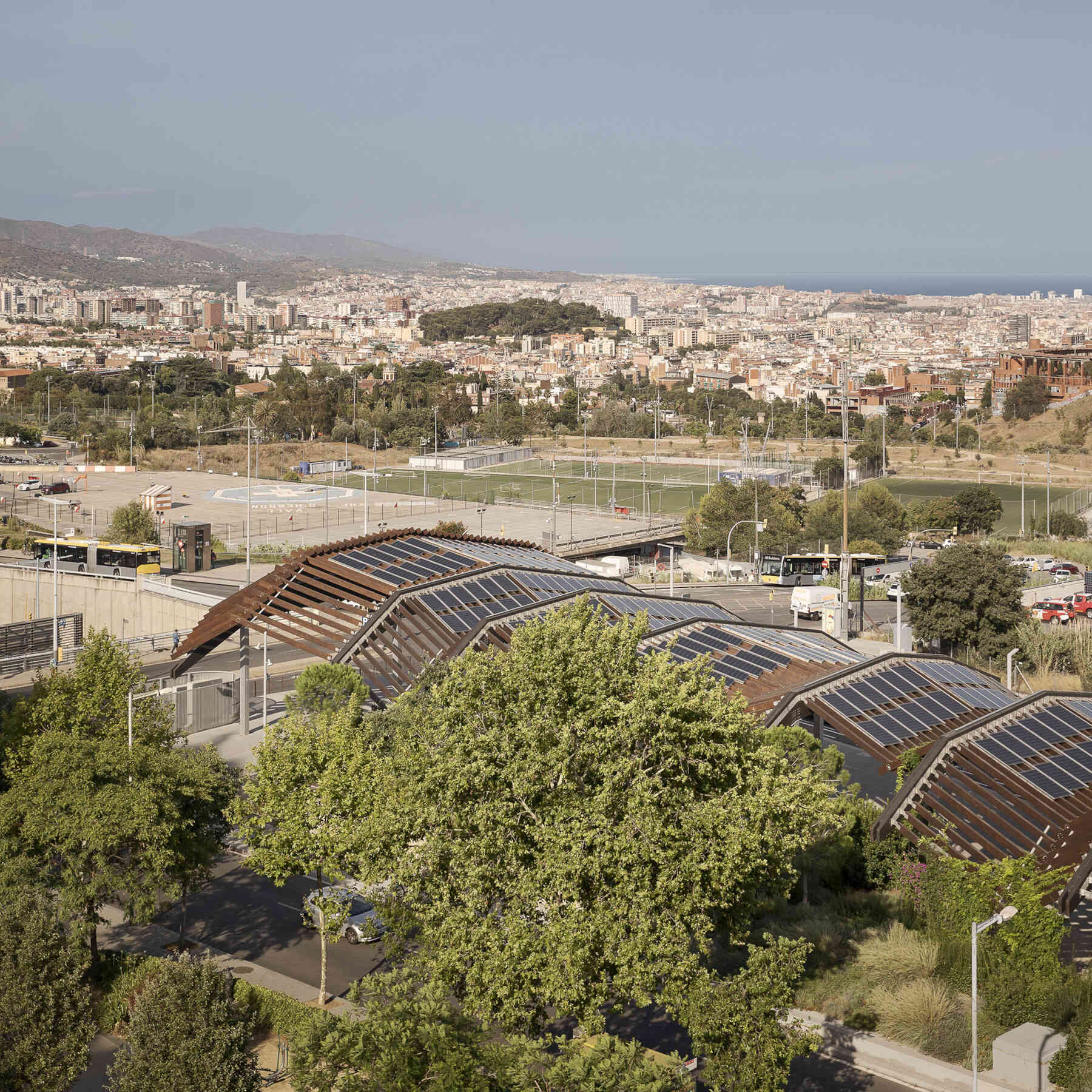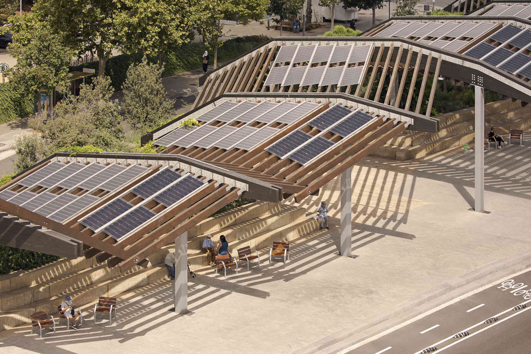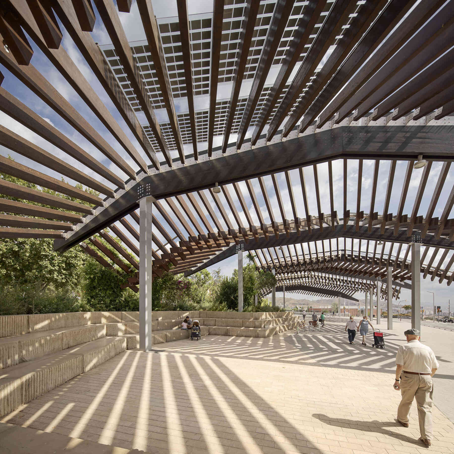 It is a square that is configured with a large productive pergola, becoming one of the largests photovoltaic pergolas in the city, a reflection of the commitment of the city of Barcelona and the conviction of batlleiroig to reverse the current situation and achieve energy self-sufficiency of public spaces.
