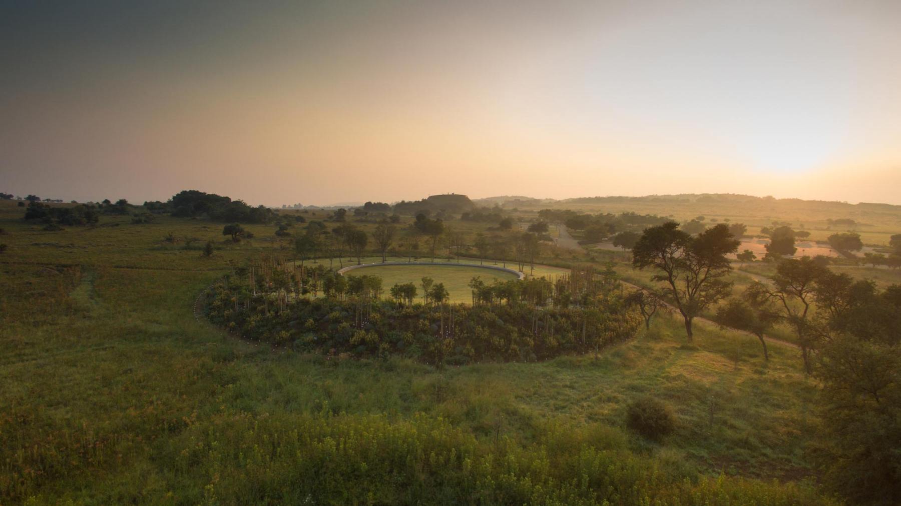 The planting palette makes use of locally indigenous forbs and trees which reflect and compliment the biodiverse Bankenveld vegetation type in which the site is situated. Intensive planting is restricted to the outside of the earth embankment, where the closely planted trees will grow into a small forest. The temporary flowering annuals will be overtaken by indigenous grasses – eventually the natural landscape and the insertions will be woven together.