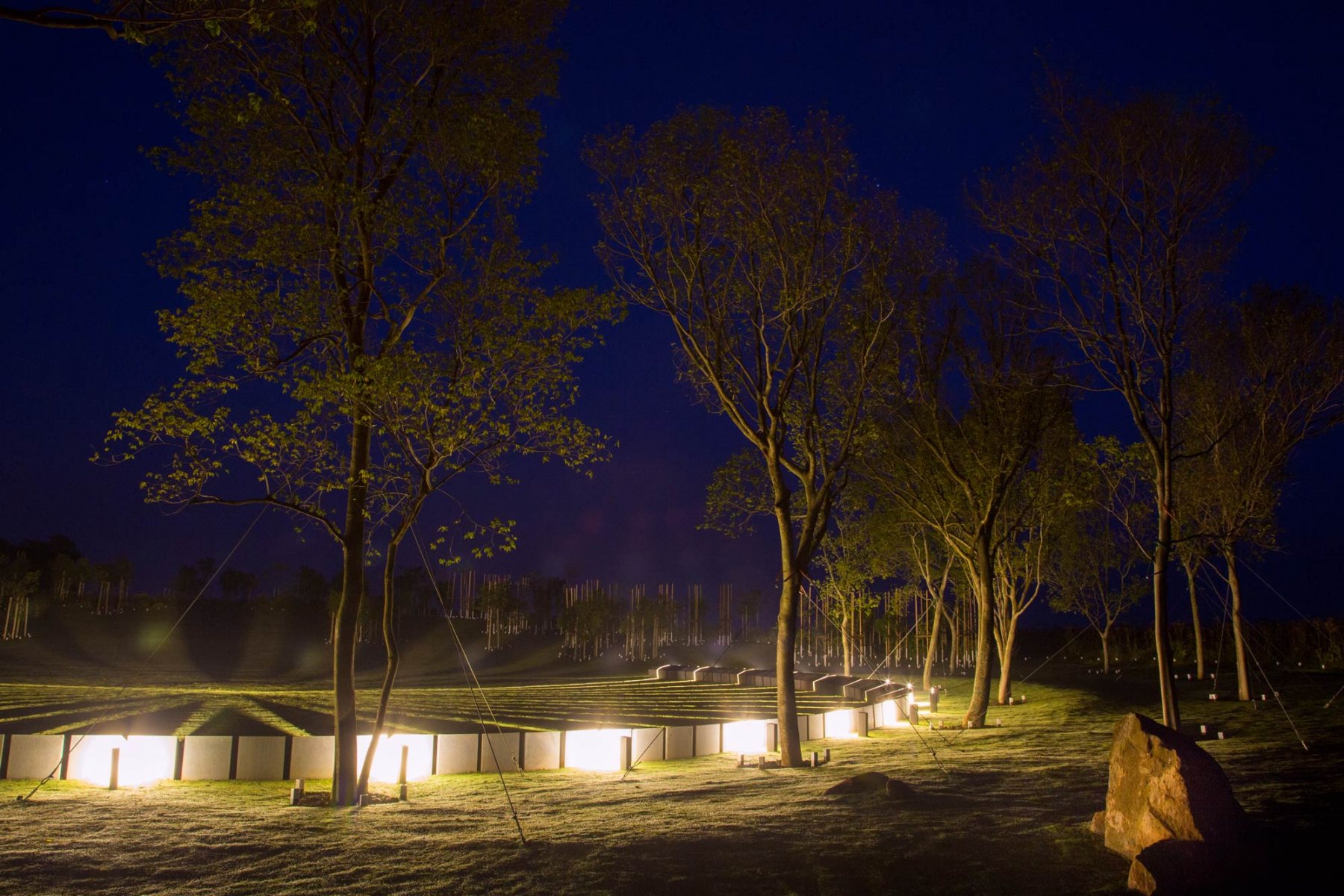 To the north, a sheltered oval lawn for picnics and events is embraced by a curved line of trees. They form a protective threshold, while framing views towards the Tumulus (museum) and the untouched grassland surrounding it. The southern edge is enclosed by a sculpted earth embankment which can be utilised as an amphitheatre for outdoor events. The formal planting of several small tree “cathedrals” create protected pockets of calmness in an otherwise windswept landscape.