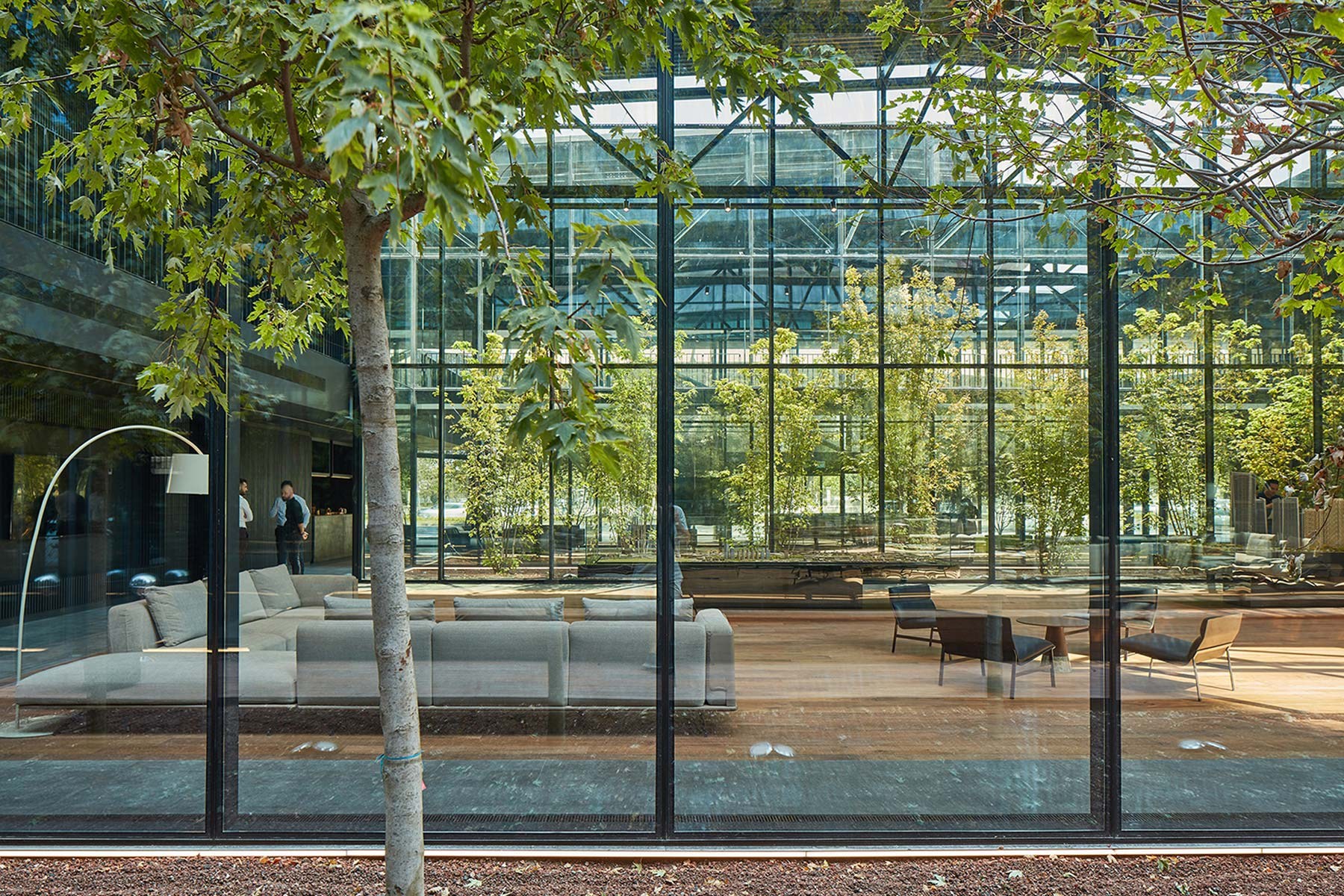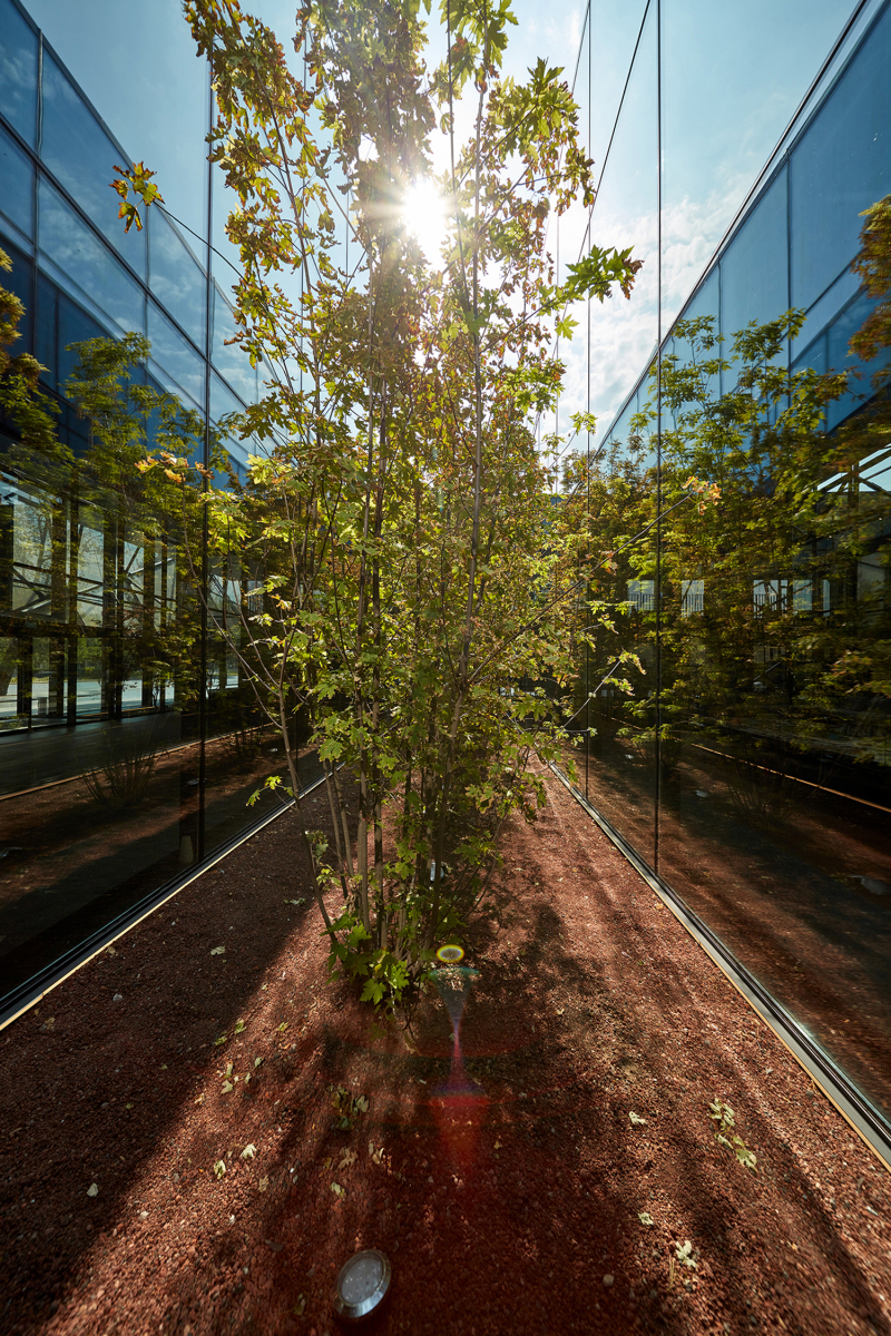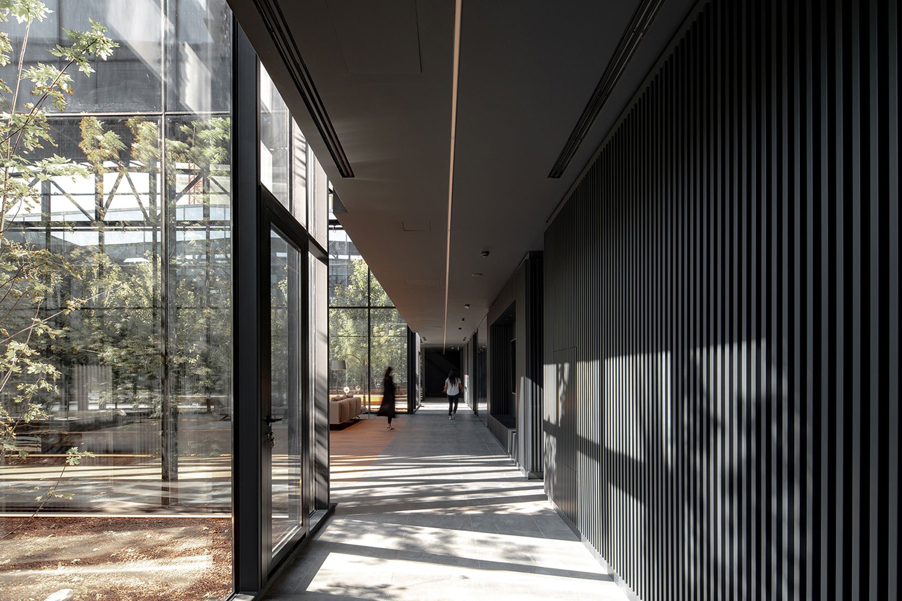 The primary design idea stems from the wish to integrate nature into architecture. Different spaces are organized in a sequential manner, while separated physically with horizontal inner garden strips, thus achieving ideal dimensions and clear divisions for different functions; visual continuity is maintained through transparency and the perception of depth increases. The atriums make sure that natural light reaches every corner within the building, blurring the distinction between inside and outside in a way. Nature is integrated into the daily life inside. The function of spaces changes gradually following the sequence; starting from entrance and waiting hall; it leads to an area where physical models of the project are exhibited and sales representatives are ready to give relevant information, allowing visitors to get an overall idea; finally it ends with the display of fully furnished sample apartment units that are built in true dimensions and materials. Service areas and circulation cores are gathered as one strip on the eastern façade, and administration offices are gathered as another strip on the western façade of the building, leaving center solely for the display of the project and inner gardens. Service areas, offices and sample apartment units continue to the first floor while the entrance hall and the model area achieve double height and visual relationship with the upper floor.