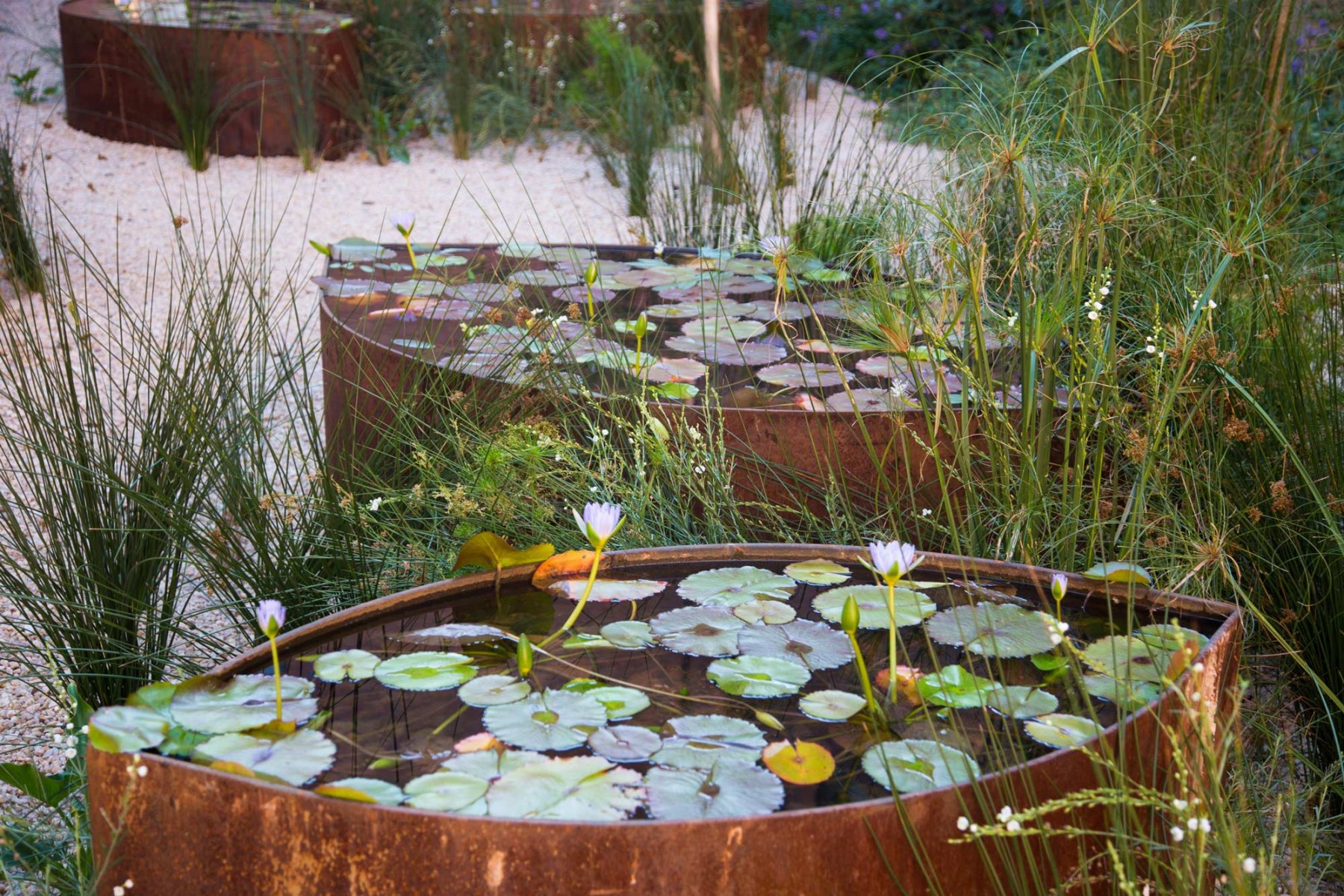 Planting, Water features, Weathering steel
