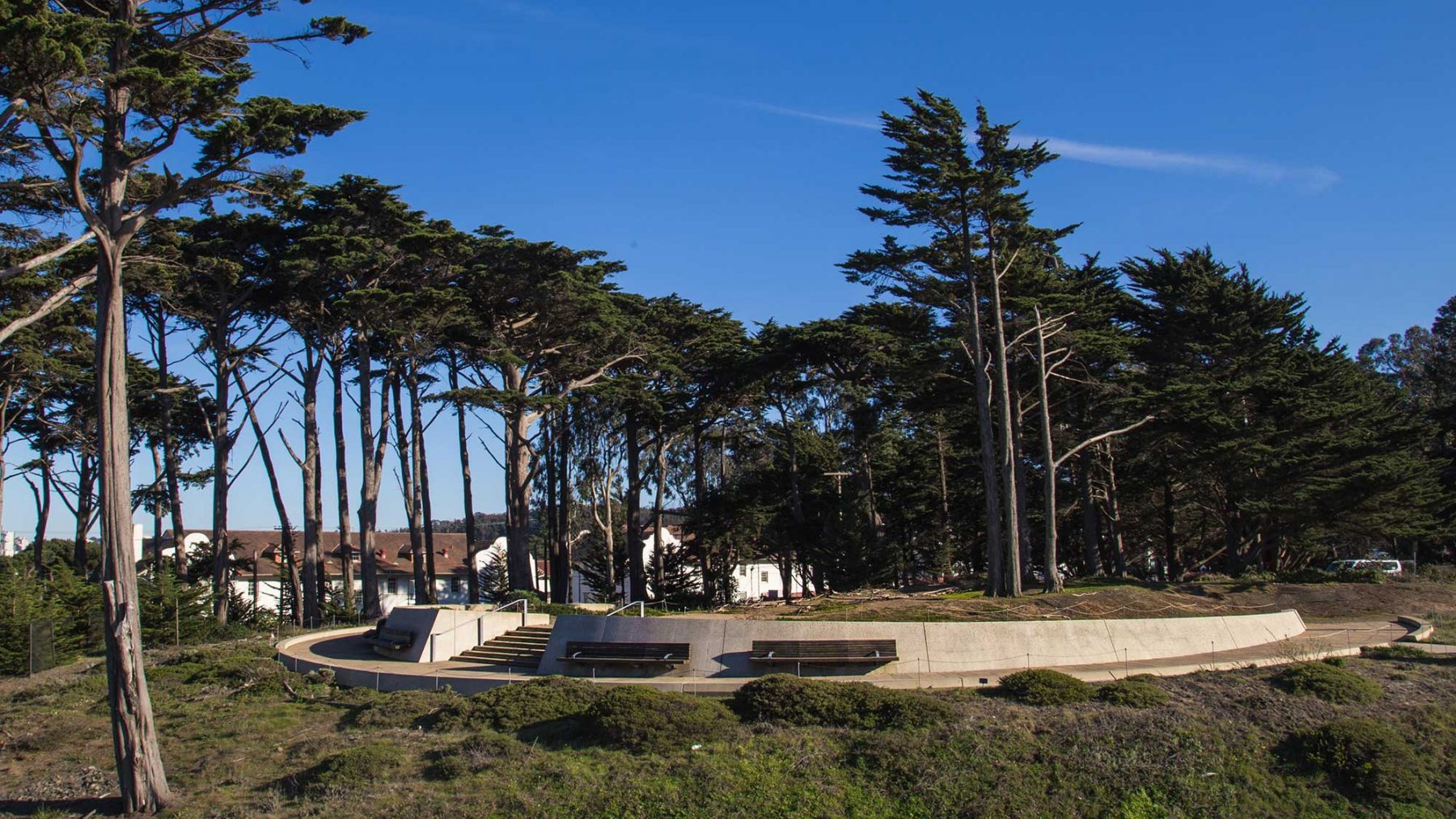 Stretching three miles along the northwestern edge of the City, MFLA designed the Presidio Coastal Trail to provide an accessible multi-use trail and a series of new overlooks, destinations, and park amenities along the bluffs of the Presidio coastline.