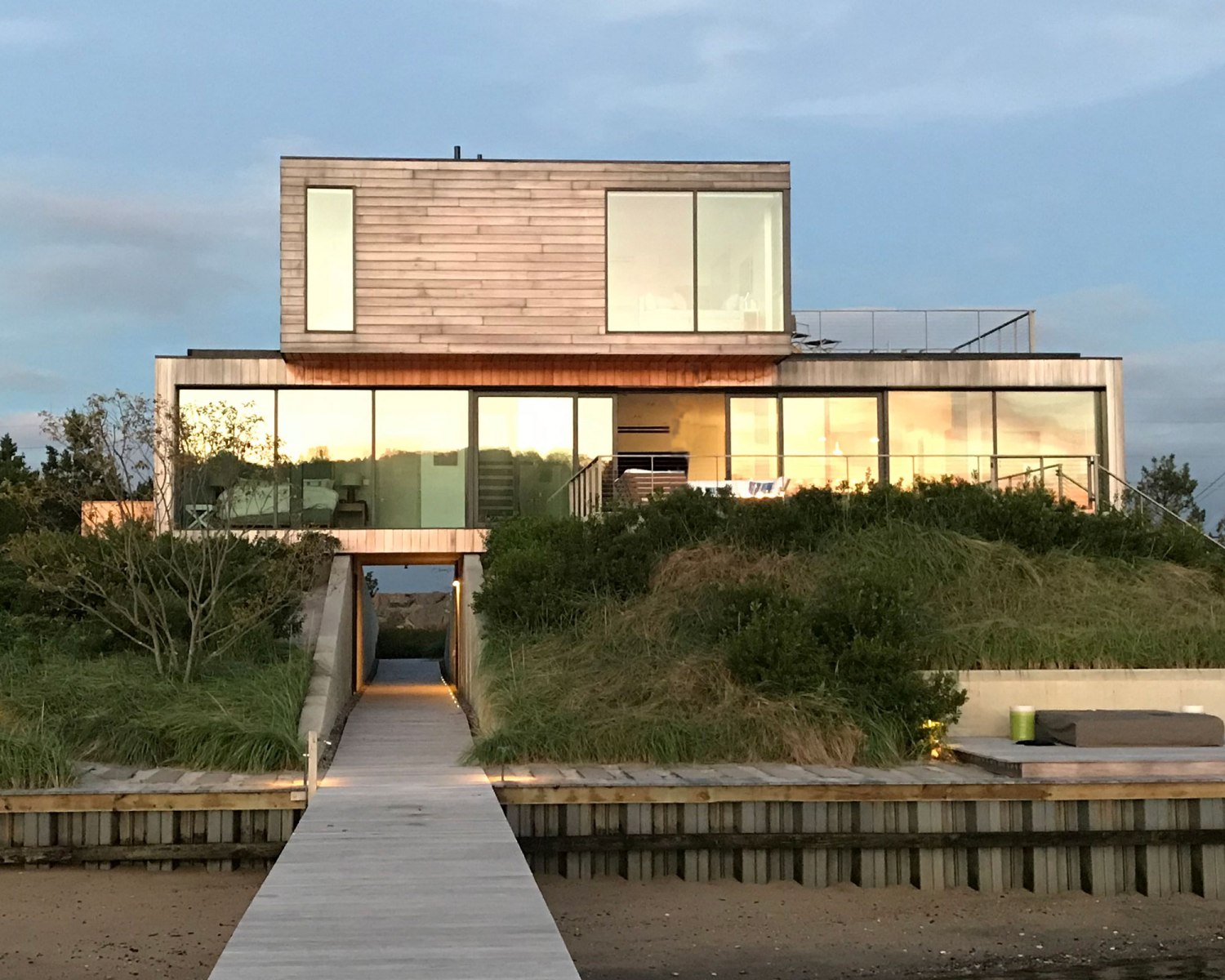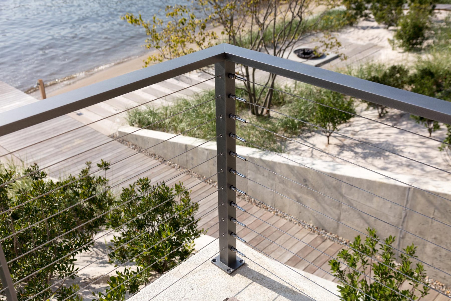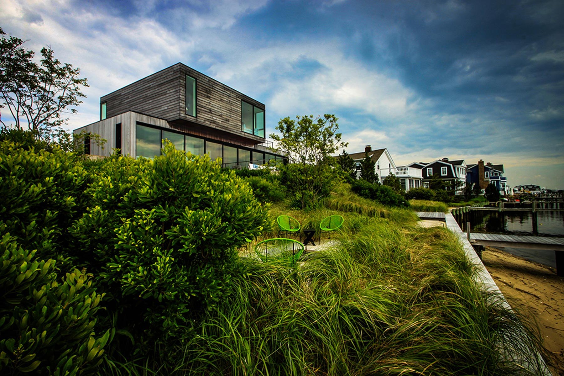 The plant palette includes native and adaptive plant species which tolerate a range of soil, light, and microclimatic conditions, resulting in root systems that secure topography and protect the ecosystem during storm events. With additional functions like privacy screens and windbreaks from trees, and native plants creating habitats for local wildlife, the plantings create a low-maintenance landscape with seasonal interest.