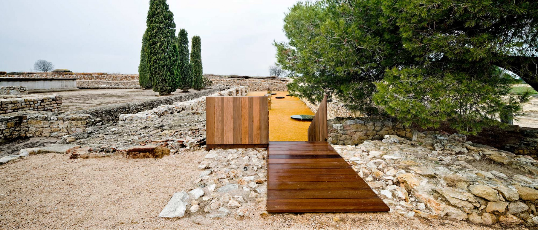 4. finally, to refurbish the itinerary for people visiting the site. The new visitors’ entrances are strategically situated on the old main roads, clearly reinforcing the idea of Cartesian order basically defined by two main axes : the cardus maximus (N_S) and the decumanus maximus (E_W)