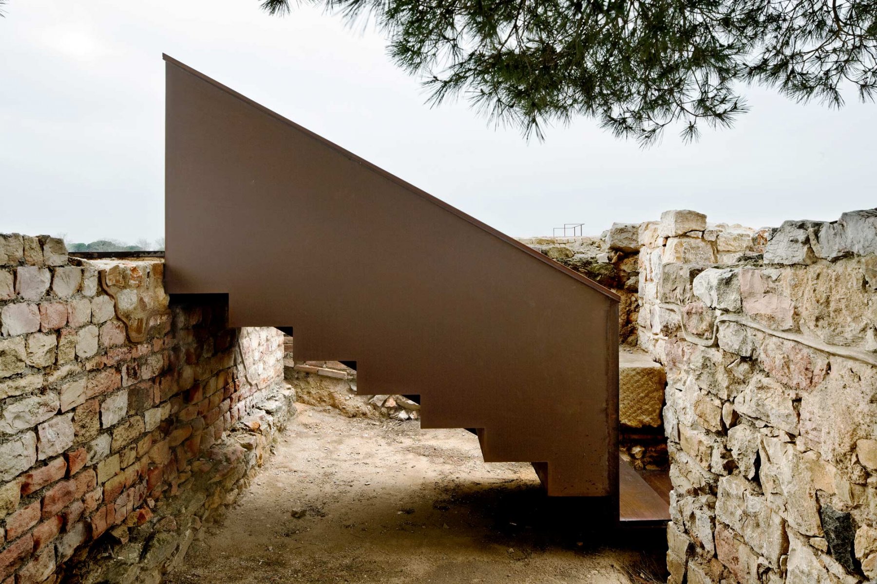 Guardrails, Steps, Stone, Weathering steel, Wood, Wood decking
