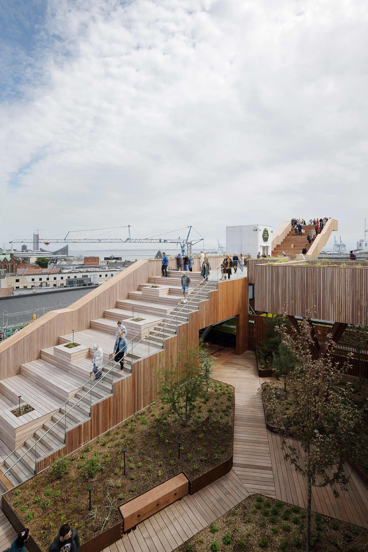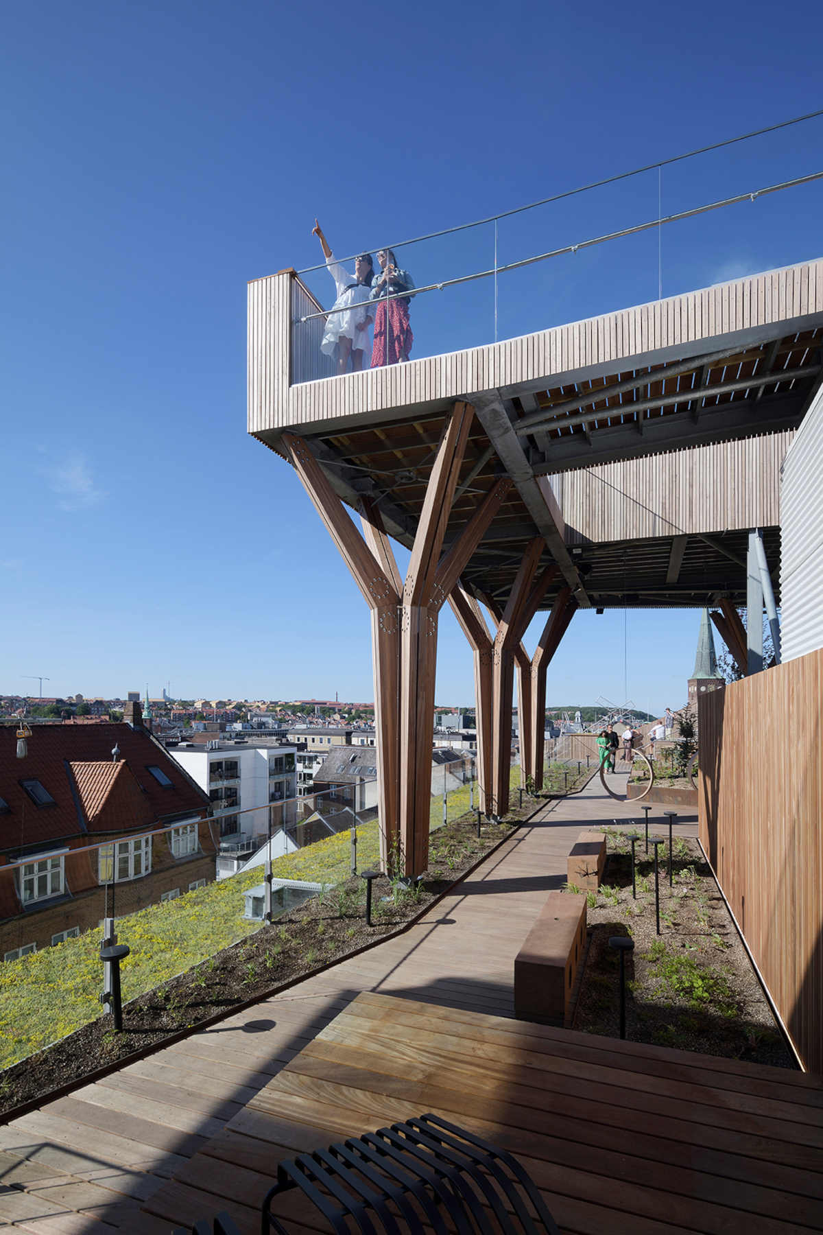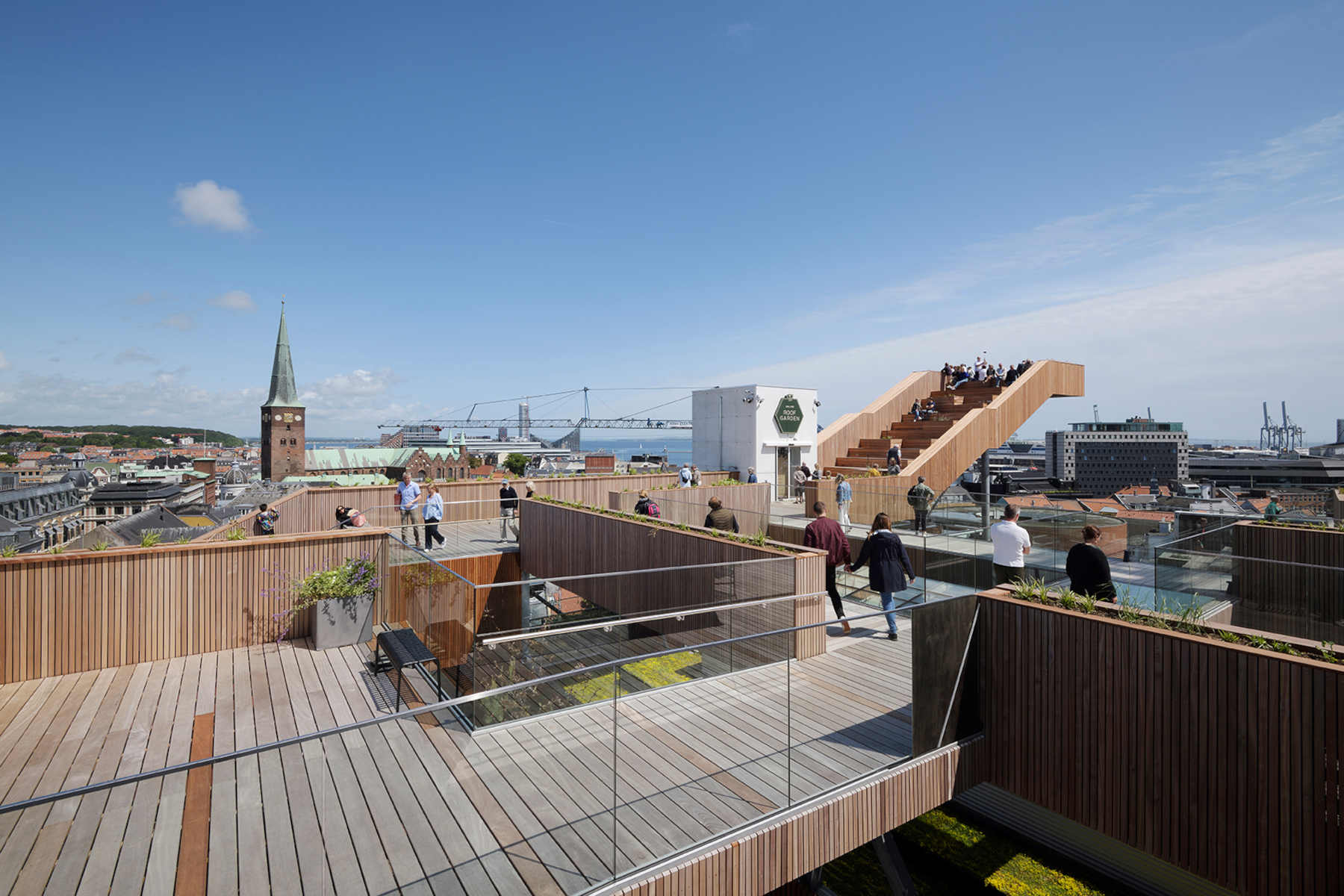 Utilizing the existing roof space of the Salling department store in Aarhus, the rooftop garden is a public area for relaxation, togetherness and increasing biodiversity in the city. This urban oasis also provides visitors with a new lookout point on the historic streets and buildings surrounding it, including the City Hall, cathedral, and Aarhus Bay.