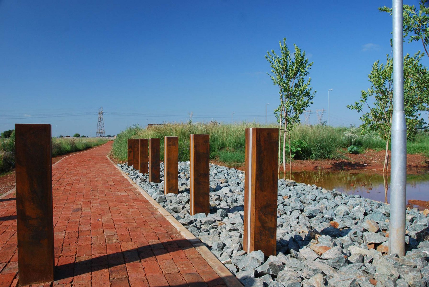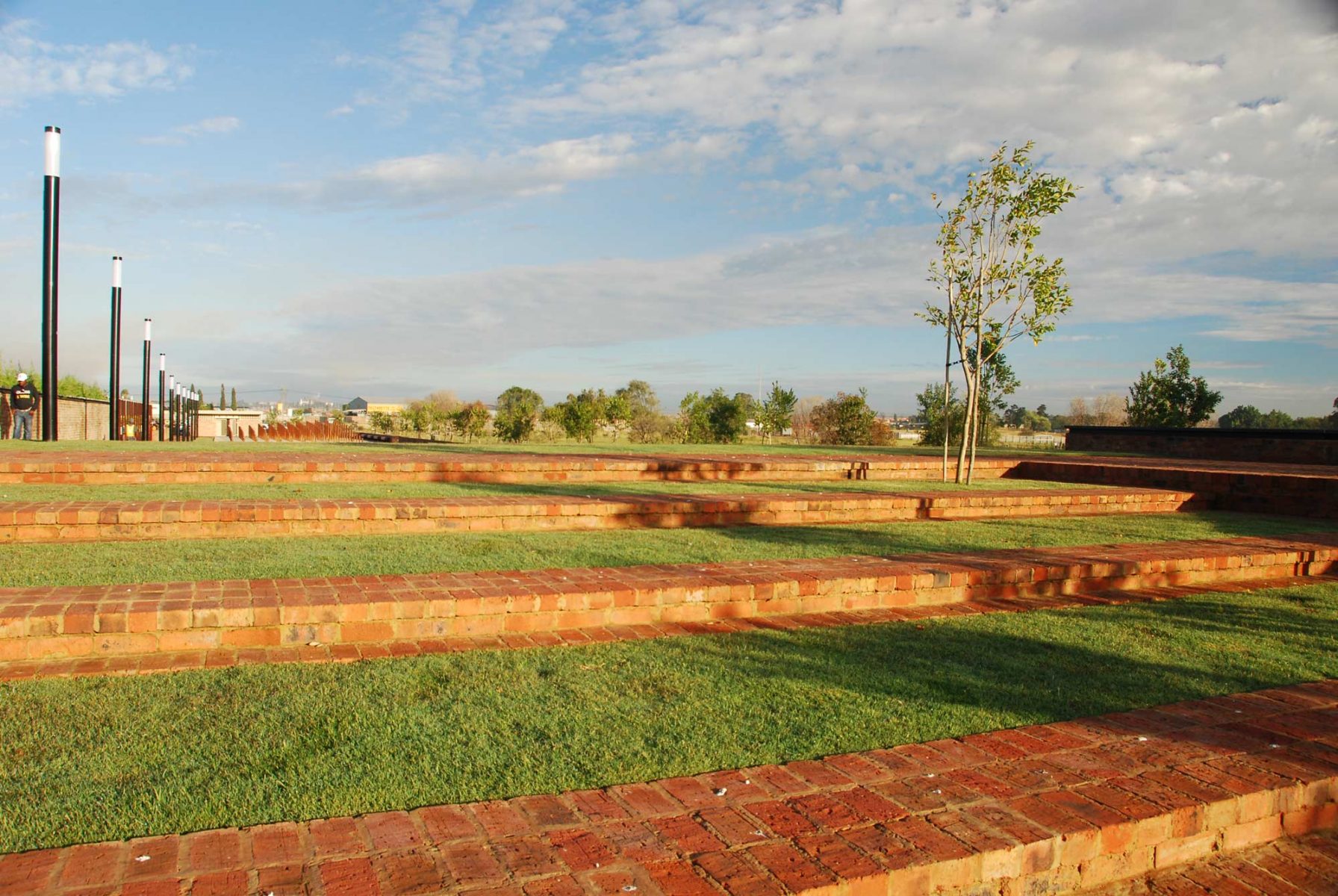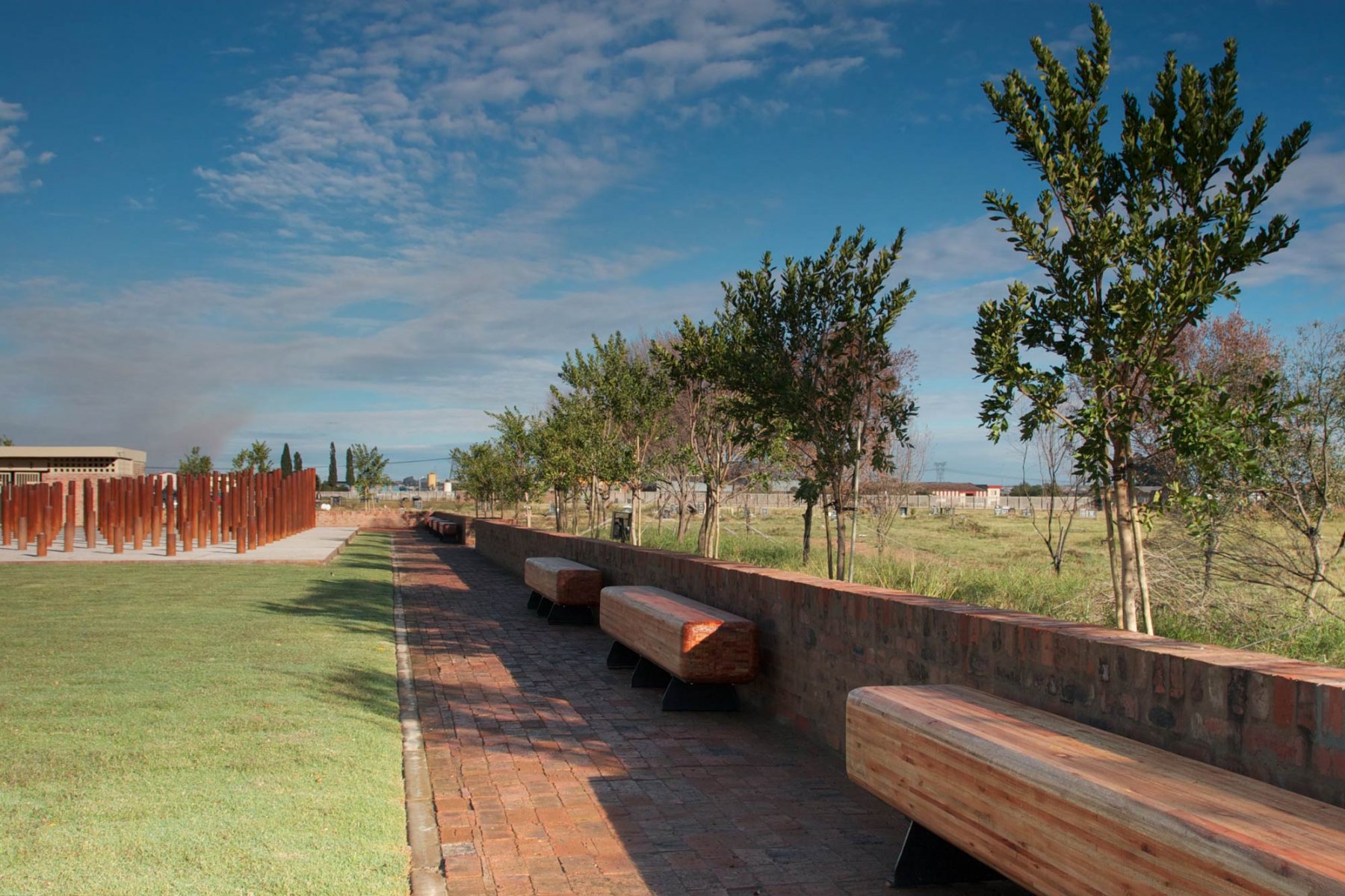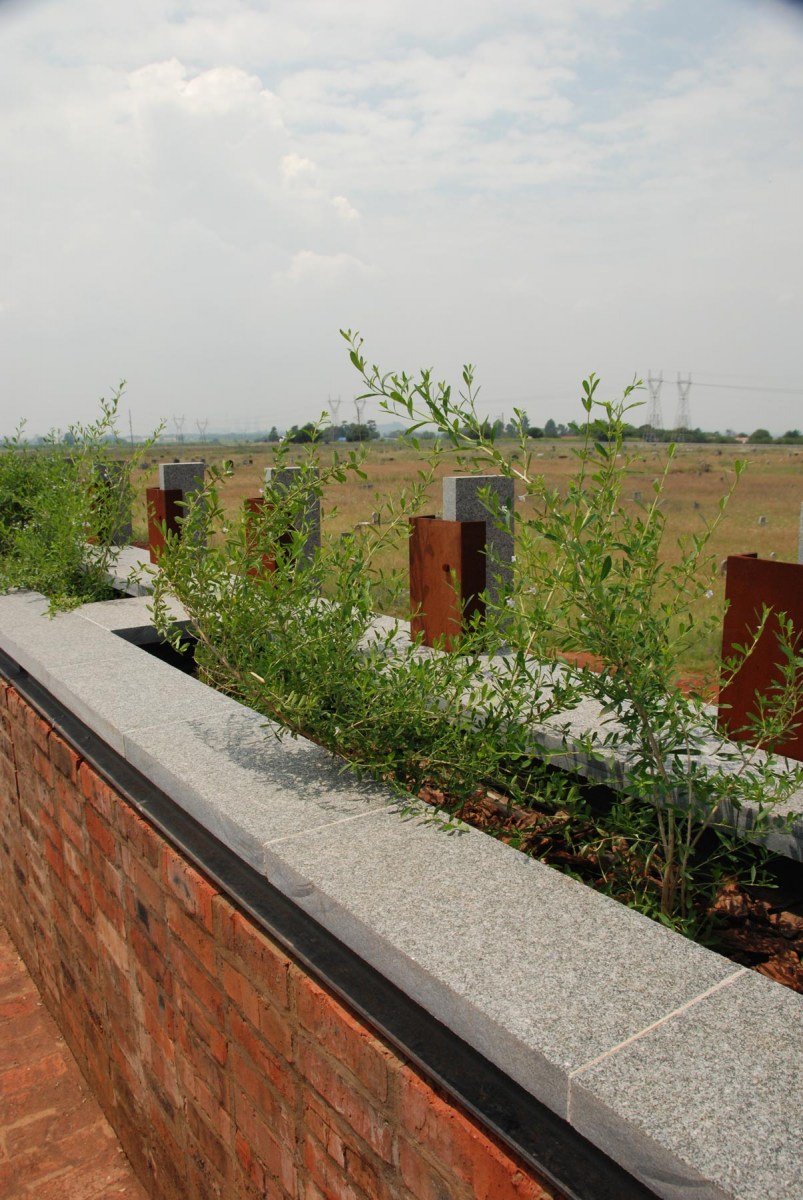 The project was conceived as a “procession through a garden” and was informed by the concepts of memorial, gathering and viewing. These concepts formed important design generators for the memorial space within the context of the cemetery, and its broader context in the Sharpeville Heritage Precinct.