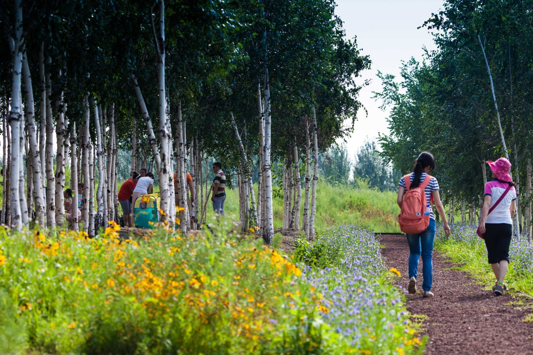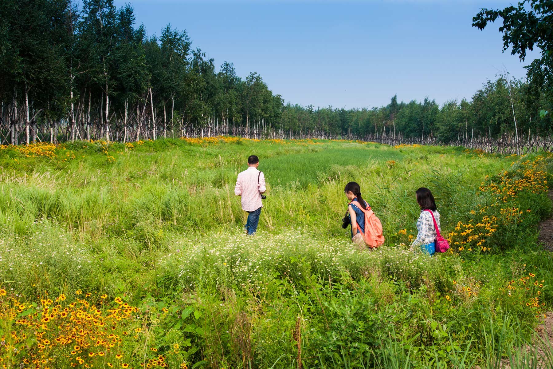Adaptive revegetation was used in the design to accommodate the two-meter annual fluctuation of the water table. In the lower land, vegetation was left to respond to the process of natural succession. On the higher land, stretches of self-reproductive semi-natural meadow were sewn between the planted native tree groves (Betula platyphylla and Fraxinus mandschurica) to create color surprise in different seasons. Except for the minimum cut-and-fill earthwork necessary to create bio-swales, little grading was planned so that all of the existing trees and ground cover could be preserved.