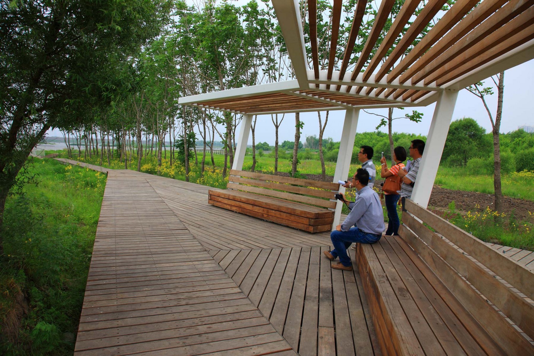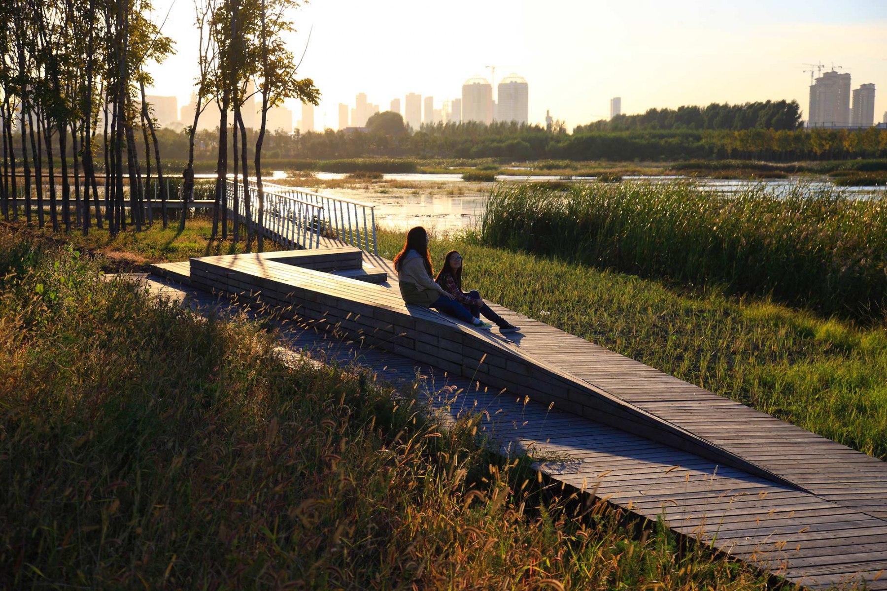 The design objective was to use minimum intervention to fashion a water resilient wetland park, functioning as an integral ecological infrastructure that remediates storm-water and waste tail water from the water plant. In the process, the wastewater would rejuvenate the wetland habitat. Furthermore, the landscape architect determined that limited design interventions would best serve the project objectives and transform the wetland into an accessible public space, allowing urban residents to have an intimate experience of the recovered natural marsh.