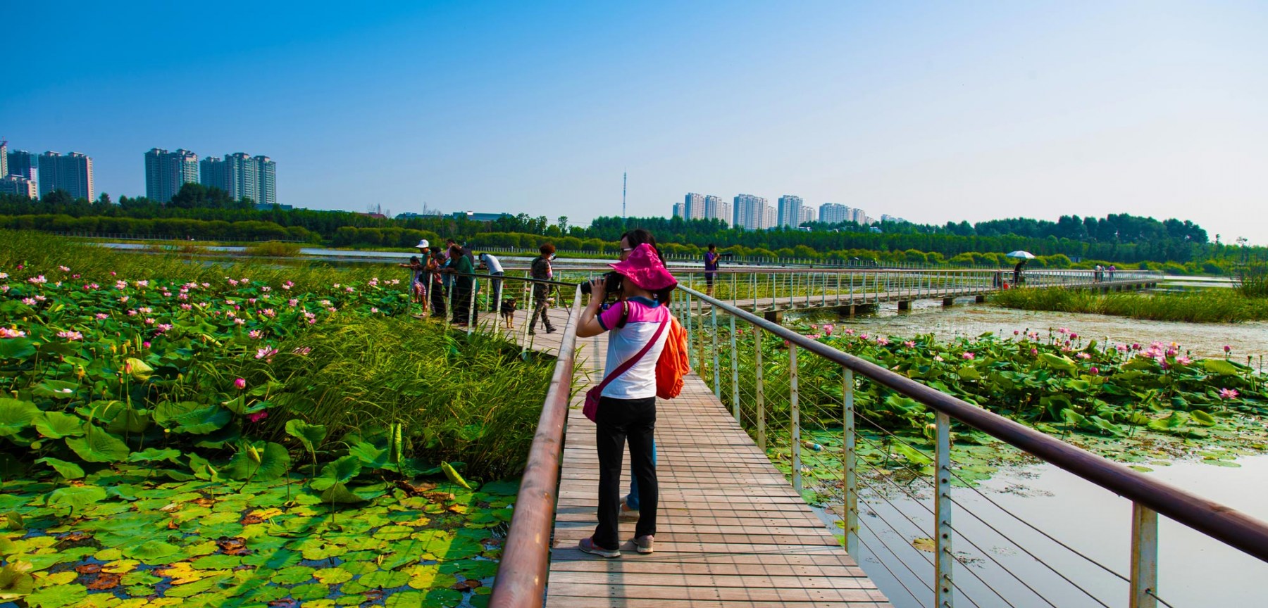 A working wetland: A series of bio-swales were designed for the periphery of the wetland park to catch and filter the storm-water runoff from the new development of the cultural center at the south and city at the north. Each day during the raining season, up to 20,000 cubic meters (706,000 ft3) of storm-water on average will drain into the wetland filtration system. The bioswales will reduce the sediment, suspended solids and heavy metals in the storm-water before it flows into the central part of the wetland. In addition, 1,500 cubic meters (53,000 ft3) of tail water from the nearby water supply plant is retained and treated in the wetland to avoid polluting the river.