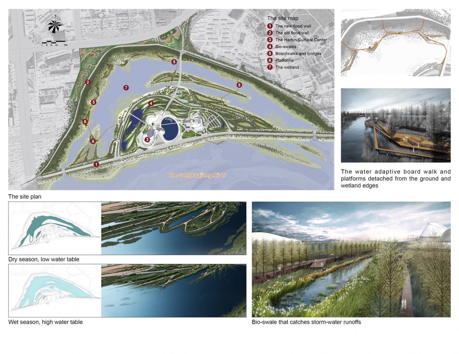 Harbin is one of the major Chinese cities in northeast area of the country. Like many northeastern cities, Harbin is subject to flooding due to its location at the lower reach of the Songhuajiang River. An existing 500-year flood control wall along the riverbank cuts off a 200-hectare (494-acre) wetland from the main river. The wetland habitat was deteriorating due to the lack of water supply. Meanwhile, the rapid urban development north of the site caused severe storm-water inundation while the discharge of the contaminated storm-water caused the water quality of the river to decline. In addition, tail water from a newly built water supply plant dumps 1,500 cubic meters (53,000 ft3) of contaminated wastewater into the Songhuajiang River. The sum of rapid urban development and urban pollution created several worrisome problems for the local community. At the same time, demand for public space soared due to the dramatic increase of urban population and development.
