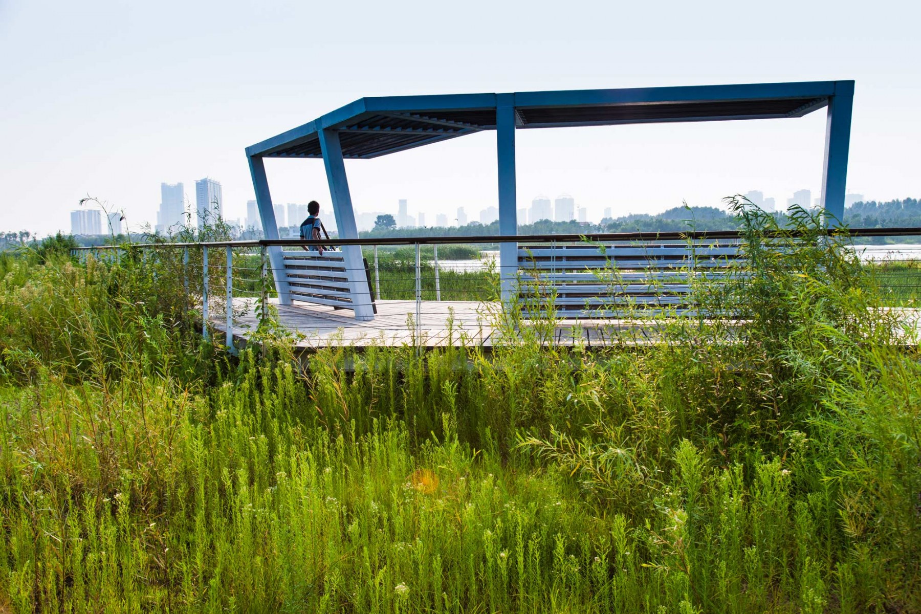 Using these two landscape strategies, the former deteriorated wetland habitat has been successfully transformed into a working marsh that remediates urban storm-water runoff and waste tailwater from the water supply plant. Since the wetland is largely under the control of natural, rather than human, processes, it is likely to become overgrown with seasonal wetland vegetation and ground cover, forming a wild and messy naturalized landscape. While detached from the ground and water allowing the native community to evolve, a network of boardwalk and resting places that fulfill the needs of recreational use and allows urban residents have an intimate touch with the nature and create an unique experience of the otherwise inaccessible marsh. This project showcase how to restore nature and how to make working landscape also pleasant through minimum intervention.